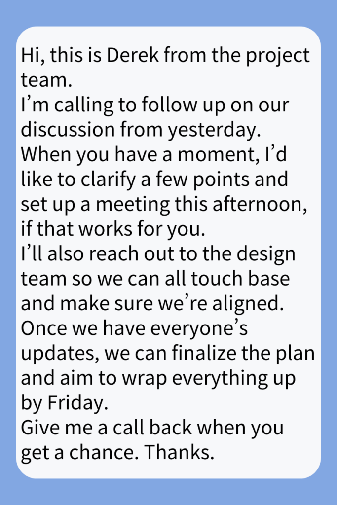 ネイティブが実際に使う自然な言い回しを取り入れた、留守番電話のメッセージ例を紹介します。