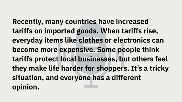 Recently, many countries have increased tariffs on imported goods. When tariffs rise, everyday items like clothes or electronics can become more expensive.