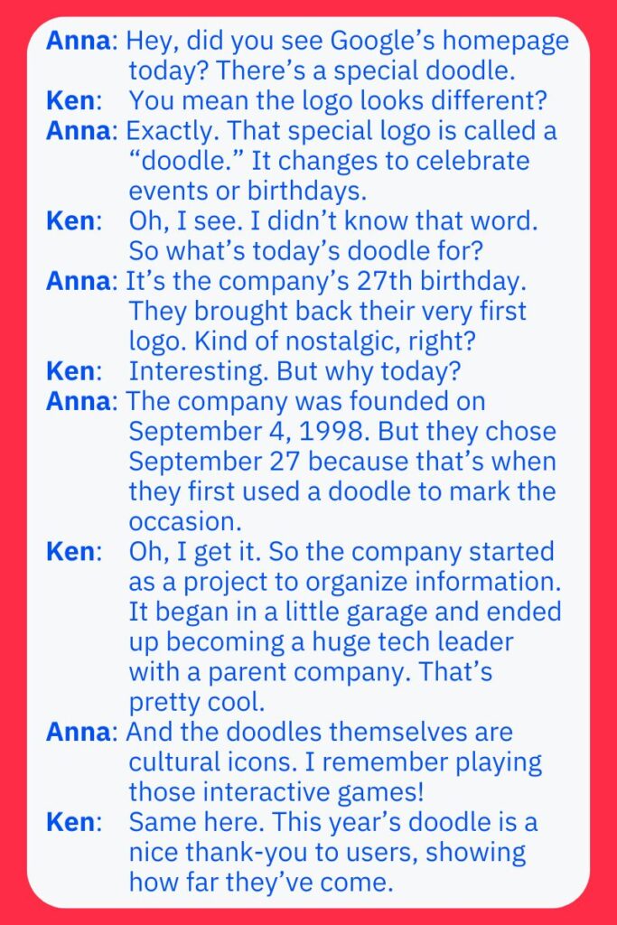 Googleの誕生日Doodleについて、二人が話している様子を聞いてみましょう。