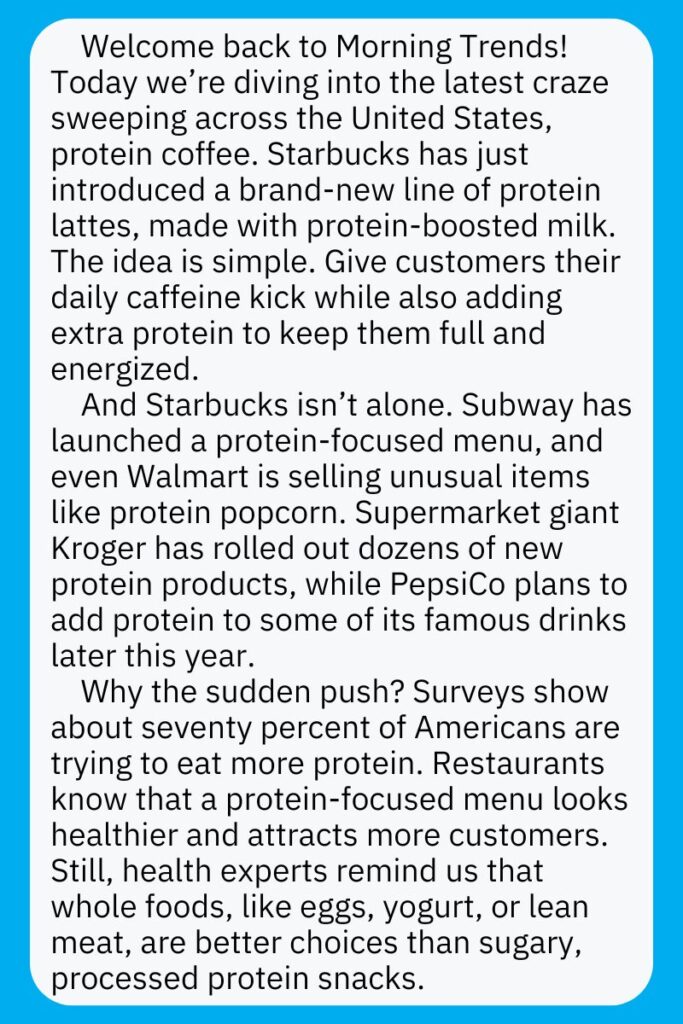 ラジオ風の音声をもとに、アメリカで急速に広がっている「プロテインコーヒー」についてわかりやすくご紹介します。